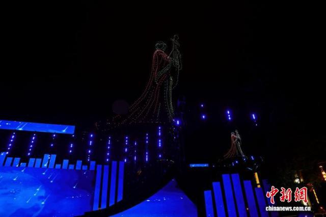 开幕式的无人机表演再现“昭君出塞”。董晓斌 摄