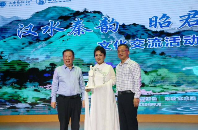 现场还举行赠礼仪式,宜昌市昭君文化促进会名誉会长吴开保、会长陈华登台,向西安易俗社社长惠敏莉赠送昭君雕像,寄托文化传承与艺术繁荣的祝愿。此次活动搭建起地域文化交流桥梁,让秦楚之情与昭君精神在交流互鉴中延续。