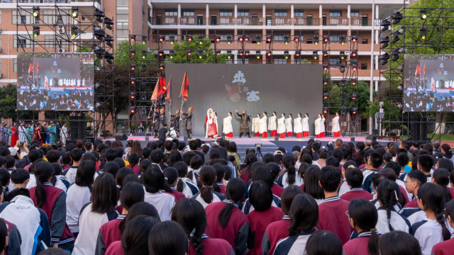 活动现场精彩纷呈,分为“传昭君文化·铸家国情怀”、“扬青春风帆·绽梦想光芒”和“耀东方少年·颂盛世中华”三个篇章,以艺术形式搭建历史与当代的对话桥梁。舞剧《昭君》生动再现昭君远赴边塞、促进民族交融的历史壮举;管弦合奏《鸿雁》、独唱《昭君出塞》以悠扬旋律与深情演唱,诉说千年家国情怀;朗诵《大写的中国》、舞蹈《青春之舞》《逐光》《万疆》等节目,将传统文化底蕴与青春活力巧妙融合,全面展现金初学子朝气蓬勃、全面发展的精神风貌,现场掌声不断、氛围热烈。